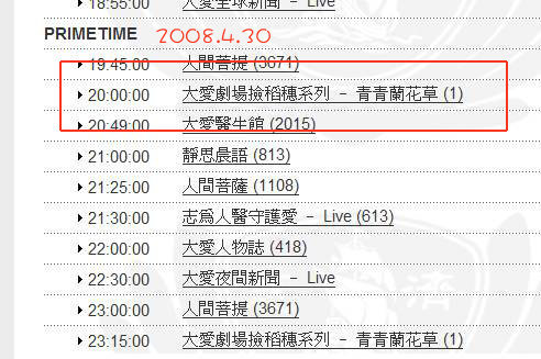 2008-04-30(三)晚上八點大愛電視 八點檔→ 青青蘭花草 上檔,幼也有演出哦!請樓上糾樓咖..阿巴找阿媽..